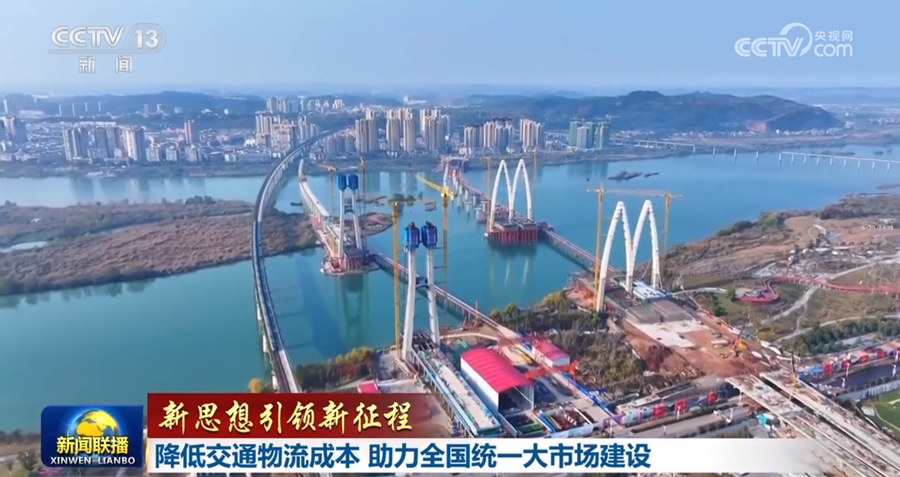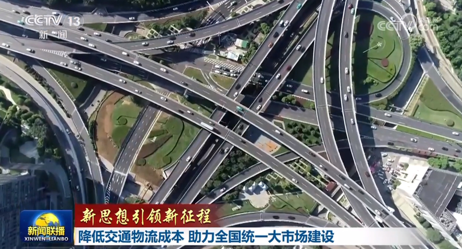 央视网消息(新闻联播):习近平总书记指出,物流是实体经济的“筋络”,联接生产和消费、内贸和外贸,必须有效降低全社会物流成本,增强产业核心竞争力,提高经济运行效率。今年以来,我国围绕强网络、调结构、促融合,出台一系列有效措施,打通交通物流领域堵点卡点,推进全国统一大市场建设,为经济高质量发展提供有力支撑。