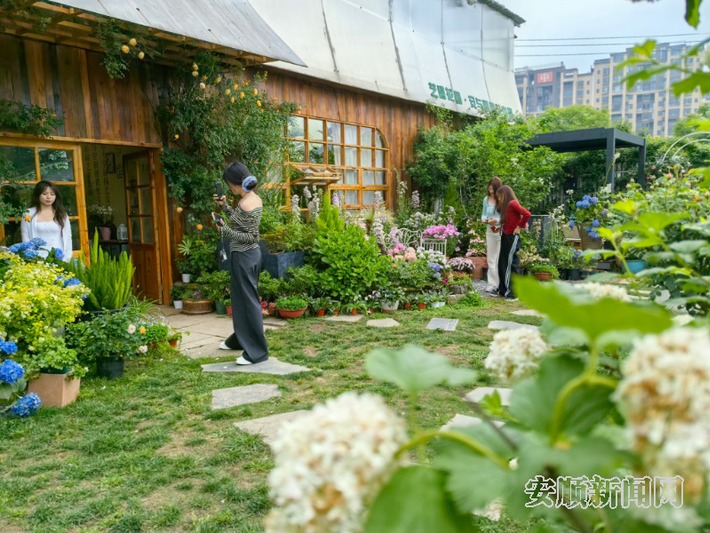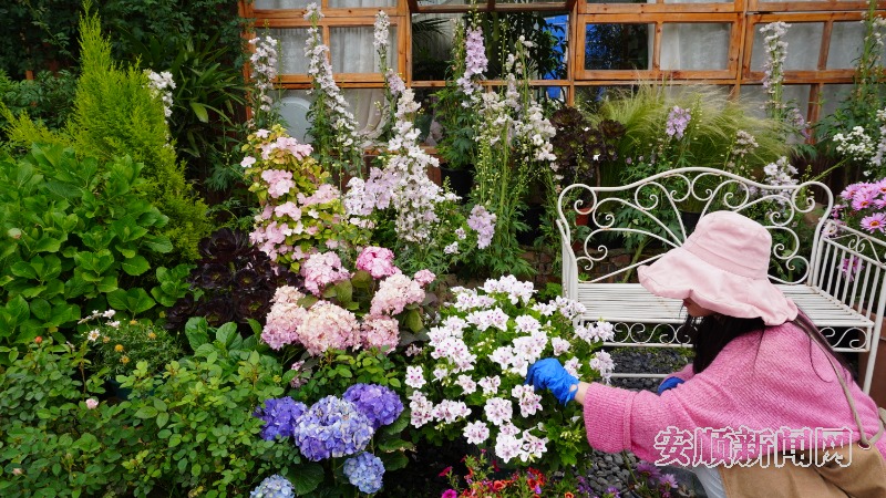 艺馨花园位于城区花鸟市场旁,占地2000平方米,拥有绣球花、蝴蝶兰、安吉拉月季等各类鲜花绿植1000多种。走进花园,仿佛置身于花的海洋,五彩斑斓的花朵竞相绽放,散发着阵阵芬芳。其中,安吉拉月季花墙开得尤为茂盛艳丽,花朵层层叠叠,形成一片浪漫的花海,游客拍照打卡最多的地方。庭院里的风车茉莉区域,洁白的花朵如繁星般点缀在翠绿的枝叶间,微风拂过,花香四溢,让人仿佛走进了爱丽丝仙境。