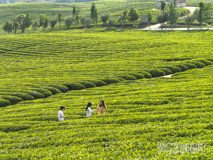 5月3日,记者走进十二茅坡茶园,看到漫山遍野的茶树层层叠叠,宛如绿色的波浪,在微风中轻轻摇曳。清新的茶香扑鼻而来,沁人心脾,让游客们瞬间远离了城市的喧嚣与疲惫。不少游客漫步在茶园小道上,手持相机,捕捉着每一个美好的瞬间,将这如诗如画的茶园风光定格成永恒的记忆。