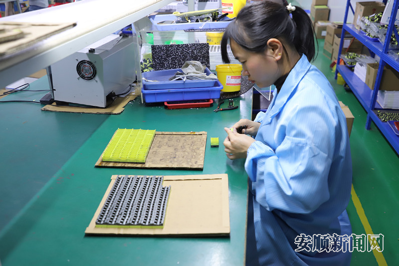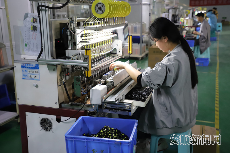 走进西秀经济开发区的安顺市伏特电子有限公司生产车间,全自动绕线机正高速运转,银白色的机械臂精准缠绕线圈,发出规律的嗡鸣声,一旁的生产流水线上,工人们熟练地进行电子元器件组装、检测等作业,各条生产线马力全开,呈现出一派热火朝天的生产景象。