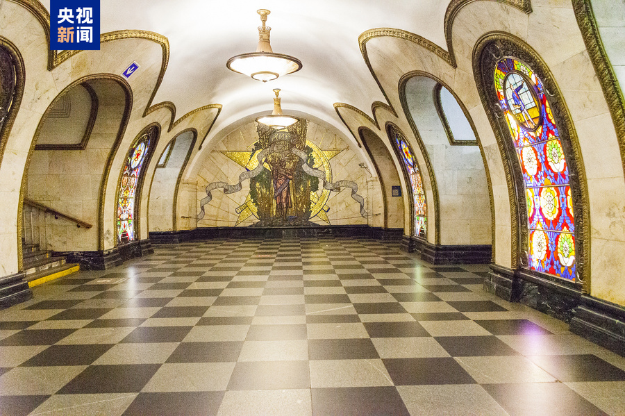 △莫斯科地铁米丘林大街站由中企中标建设,地铁站有红色立柱、团寿纹、祥云等中国元素装饰。