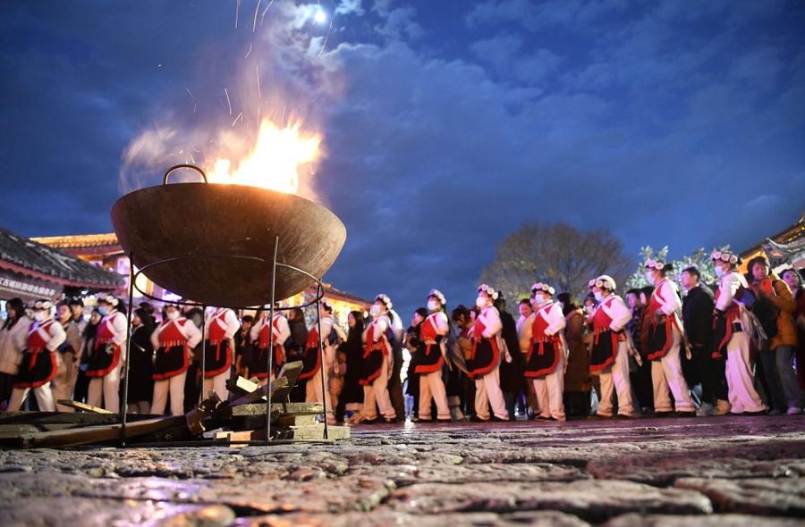 当游客穿过一处处古老院落,踏着石板路来到广场中央,同身着传统服饰的纳西族阿妈一同围着篝火打跳,本地居民与外来游客、千年古城与现代产业,都在润物无声的文化浸润中联系在一起。
