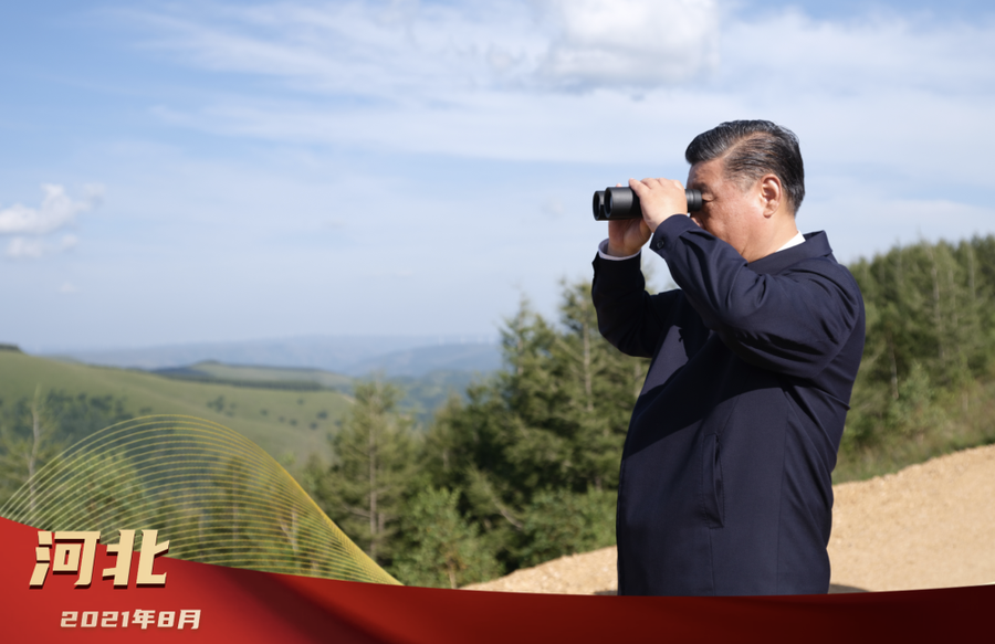 2021年8月,在塞罕坝林场,习近平总书记登上月亮山,俯瞰荒原变林海的人间奇迹。习近平总书记指出,“我们建这片林,它的生态屏障作用,要永远发挥下去。”