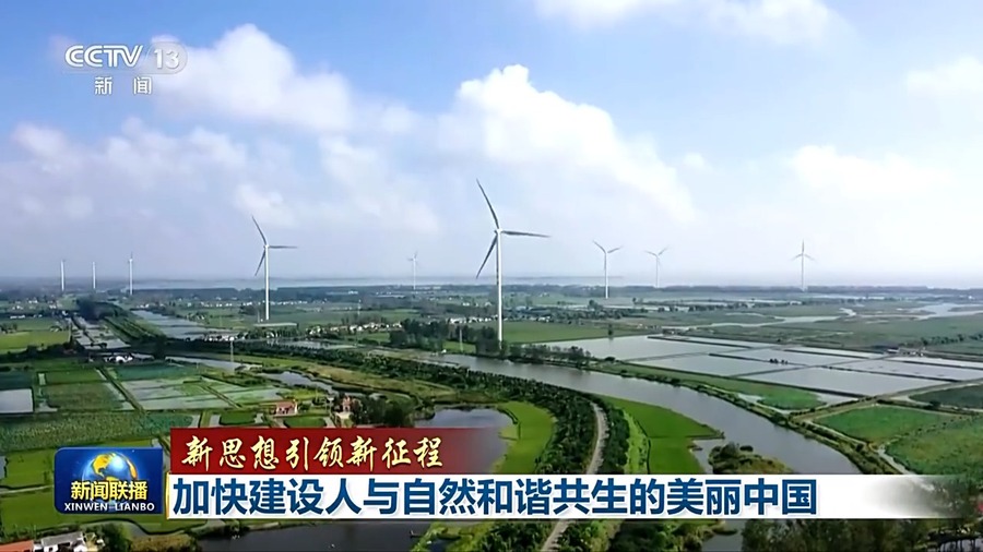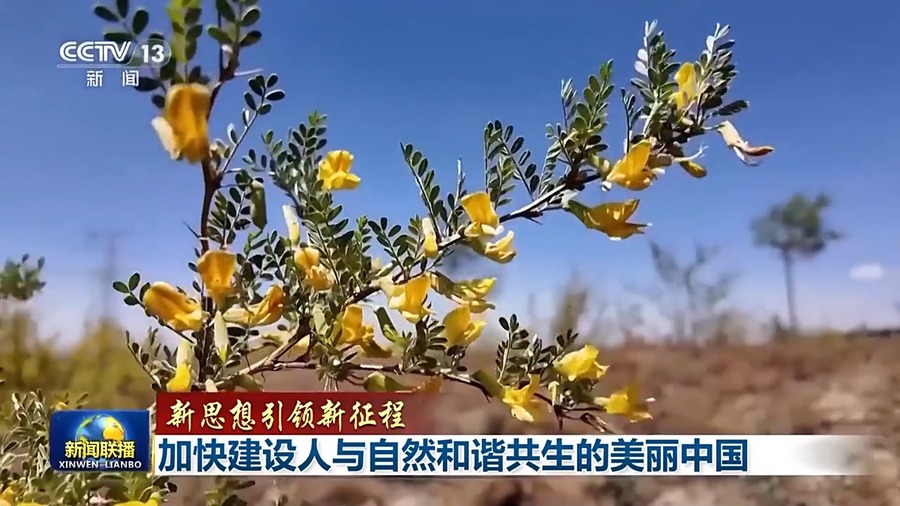 今天,绿色成为美丽中国的鲜明底色。甘肃八步沙林场今年将造林绿化两万亩,从上百公里外调配到这里的黄河水,正在浇灌新的绿色希望。夏夜的北京,新疆的绿电跨越3000公里,“点亮”城市。如今,绿电在北京全社会用电量占比已近三成。