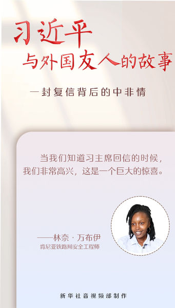 2023年底,北京交通大学的肯尼亚留学生和校友代表给习近平主席写信,表示非常高兴来到中国学习铁路运营管理知识,希望当好肯中友好的桥梁。已经学成归国的林奈也参与其中。