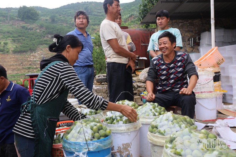 近日,关岭自治县花江镇莲花村的四月李进入大规模采收期,吸引了众多收购商前来采购。
