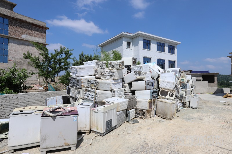 近几年来,普定县白岩镇高管村越来越多的农户选择加入再生资源回收行业,废旧金属、废旧洗衣机等再生资源在这里经过回收、分拣、销售实现再生金,助力了群众稳定增收。