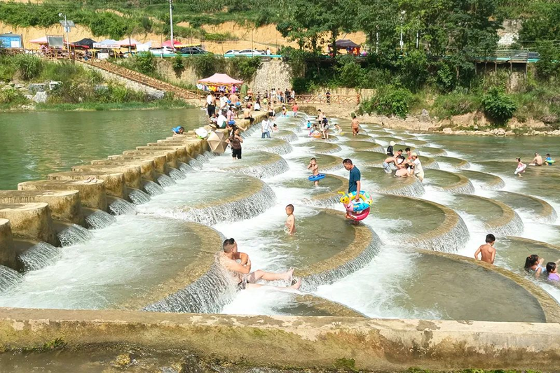 游客在河道中嬉戏