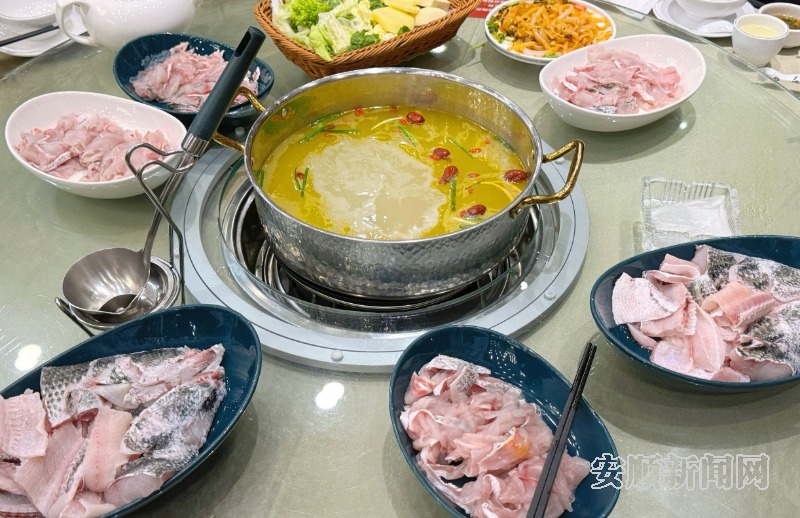 “刘老实食府不仅是一家店,更是我们安顺的一张美食名片。每次有外地朋友来,我都会带他们来这里品尝片片鱼。”刘老实火锅店内的食客张毅宏边吃边介绍道,“涮鱼片之前先喝汤。慢火熬煮的骨汤是精髓,一涮即熟的鱼片是重点,小米椒蘸水更是灵魂……我和家里人已经吃了十多年了。”