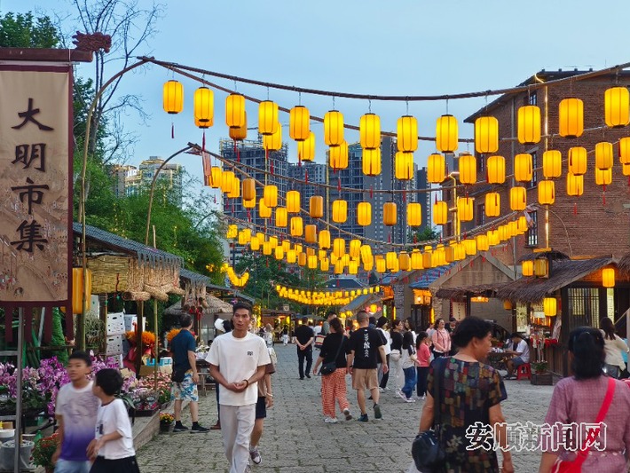 据了解,安顺古城大明市集于7月12日盛大开街,是安顺市在深入挖掘安顺古城历史文化基础上的一次全新尝试,进一步强化了安顺古城与虹山湖之间的旅游联动,为这座历史悠久的城市注入了全新活力,为古城点燃“烟火气”,聚拢人气。