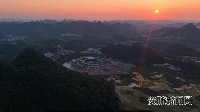 走进黄果树游客服务中心项目现场,圆弧形建筑宛如天然喀斯特溶洞般浑然天成,玻璃幕墙勾勒出少数民族银饰的灵动光泽,楼顶草坪的青葱绿意更添几分生机。这座融自然肌理与文化底蕴于一体的建筑,已于6月30日主体正式完工,为黄果树建设世界级旅游景区再添一枚重要砝码。