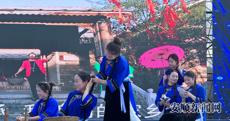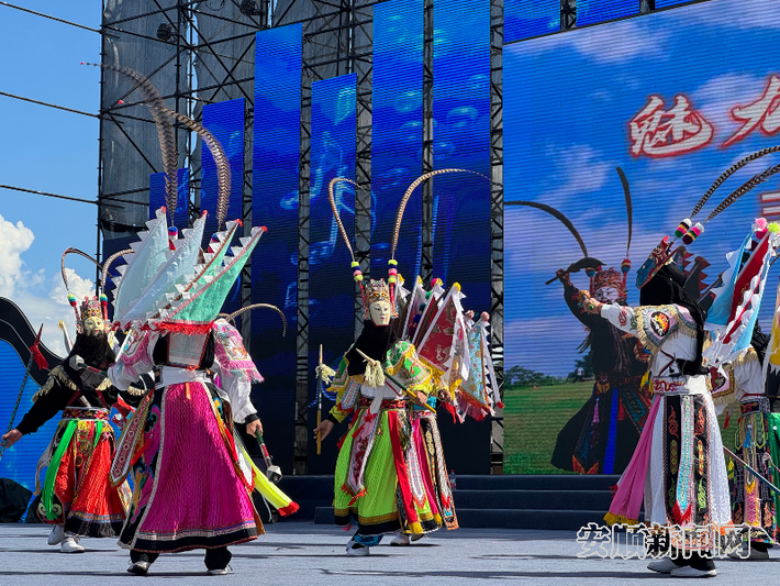盛夏的炽热,丝毫未减这场文化盛宴的热烈氛围。活动在歌伴舞《屯堡人》的深情演绎中拉开序幕,演员们用灵动的舞姿与悠扬的歌声,诉说着六百年屯堡的沧桑变迁与动人故事。紧接着,国家级非遗安顺地戏震撼登场,演员们头戴面具,以雄浑的唱腔和矫健的身姿,将历史故事演绎得淋漓尽致,让观众深刻领略到“中国戏剧活化石”的深厚底蕴。关岭《盘江小调》、屯堡花灯《唐二接亲》以及镇宁《铜鼓十二调》轮番上演,生动呈现安顺多元地域文化的璀璨画卷。活动在诠释屯堡磅礴历史的歌伴舞《九哥》中圆满落幕。