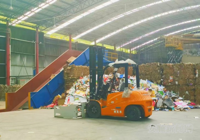 清晨,在贵州叁壹再生资源供应链管理有限公司分拣中心,大型机器正在高速运转,各类废弃纸壳经由巨大的传送带运送后进行压缩等操作;工人们熟练而迅速地将废纸、塑料、金属等进行分类。日复一日的热火朝天景象,是安顺“无废城市”建设的日常图景。