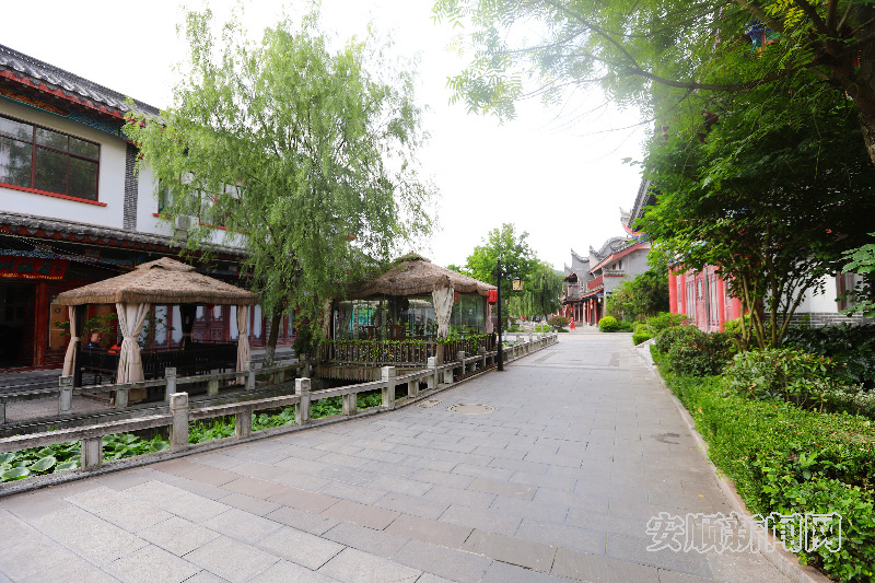 近日,走进苗岭屯堡古镇,只见街道整洁、草木葱茏,阳光透过层叠的绿叶洒落地上,斑驳的光影如同自然的画作;白墙青瓦的住宅区内,漫道旁杨柳依依,石桥下流水潺潺,田田的莲叶、粉色的花朵“妆”点着池塘,给人一种“小桥流水人家”的宁静之感……共赴清凉之约的人们在街巷散步、在亭子纳凉、在河边娱乐,悠然自得。