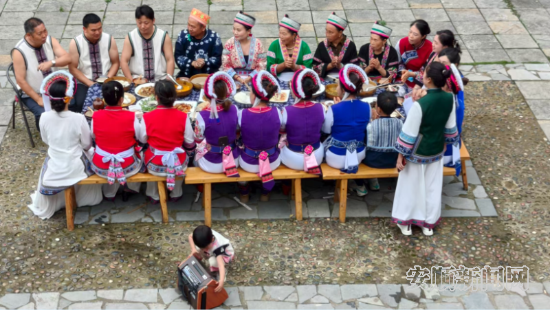 阿妹山庄游客体验民族风情和长桌宴
