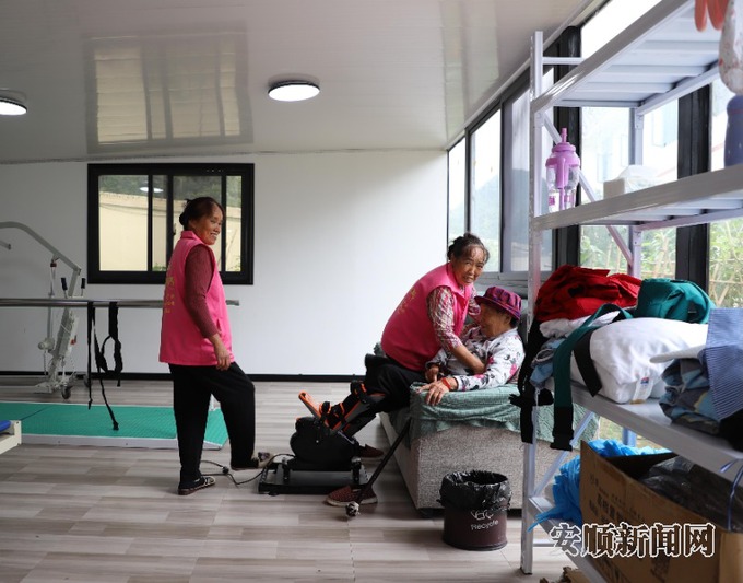 走进位于罗仙村的安顺山居康养院,记者看到护理员帮老人做康复训练,有的老人坐在洒满阳光的庭院中,正跟着音乐节奏,在护理员的指导下做着手指操。