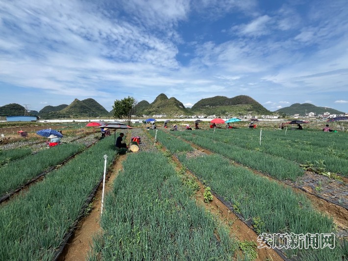 初秋时节,在普定县马官镇各大蔬菜基地里,一株株黄瓜、一垄垄香葱长势喜人,随处可见农户们躬身劳作的身影。