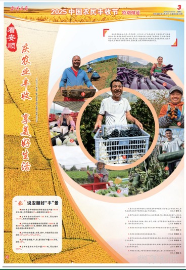 五谷丰登秋分始,又是一年丰收季。9月23日,以“庆农业丰收 享美好生活”为主题的2025年中国农民丰收节如约而至,物产丰饶的安顺,也迎来了收获的日子,安顺市融媒体中心记者以文字为笔,图片为镜,带大家一起感受农业丰收场景,体味农民艰辛,感受丰收喜悦,全面展示安顺农业丰收、农村发展、农民幸福的新风貌新气象。