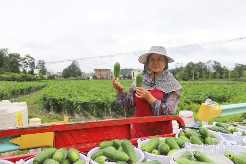 西秀区杨武乡辣椒、黄瓜、茄子、丝瓜、毛节瓜等近万亩蔬菜进入采收旺季。图为菜农采收毛节瓜。 □记者 吴学思 摄