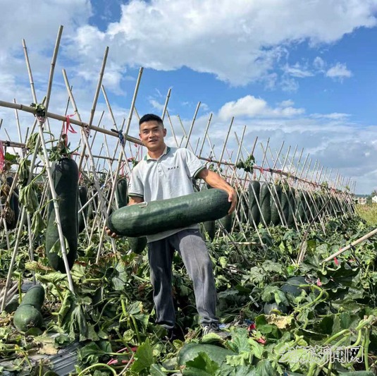 西秀区刘官乡返乡创业青年任飞翔今年种植的200余亩冬瓜喜获丰收。□记者 郝媛 摄