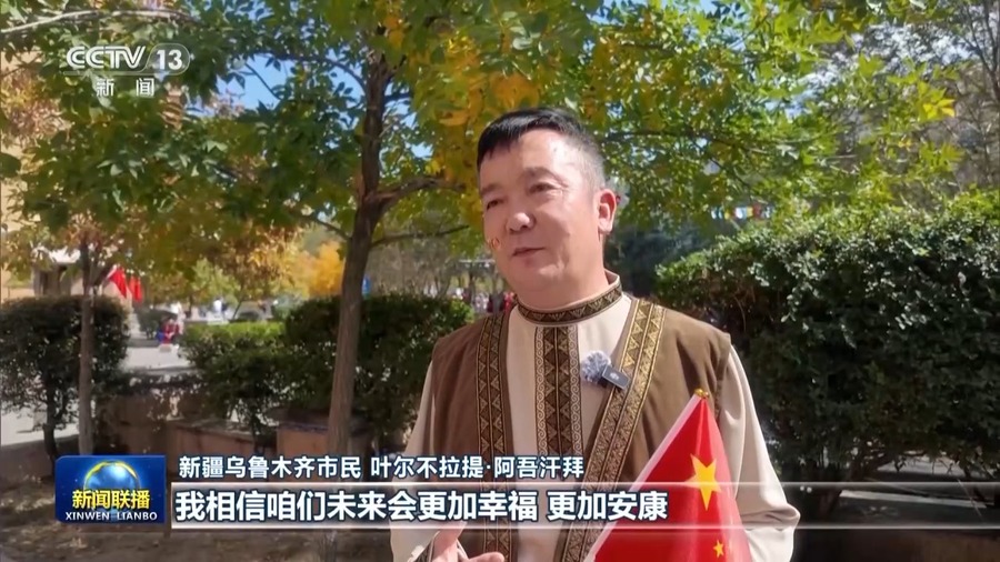 新疆乌鲁木齐市民 叶尔不拉提·阿吾汗拜:新疆各族人民今天这么幸福的生活,都是习近平总书记的关怀,党中央的正确领导。我相信,咱们未来会更加幸福,更加安康。