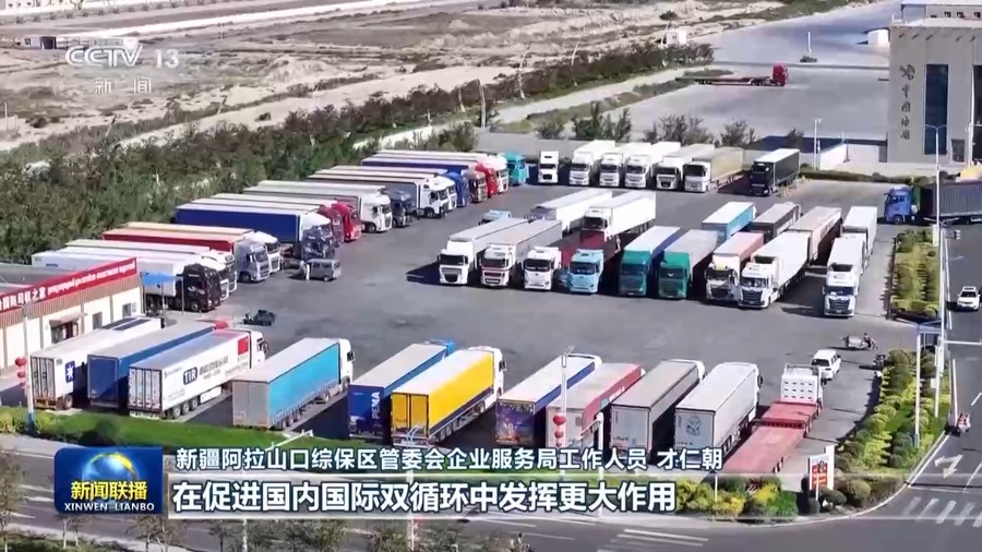 新疆阿拉山口综保区管委会企业服务局工作人员 才仁朝:习近平总书记指出,加快推进丝绸之路经济带核心区建设。我们将用好用足综保区政策功能优势,服务好各类企业在促进国内国际双循环中发挥更大作用。