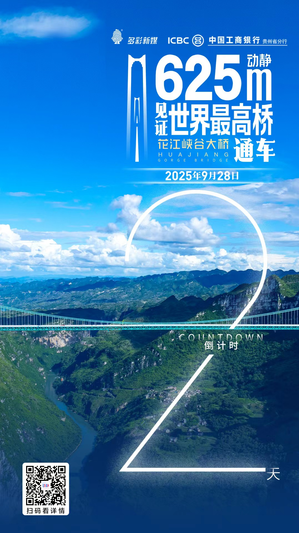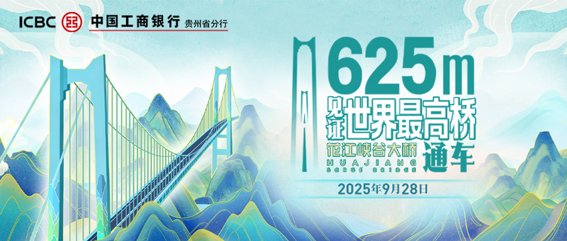 9月28日,“横竖都是世界第一”的超级工程——花江峡谷大桥将正式通车。大桥主跨1420米,是世界山区桥梁跨径第一;桥面距水面625米,是世界第一高桥。这座建在“地球裂缝”北盘江大峡谷上的蓝色巨龙,不仅改写了世界桥梁纪录,更将两岸通行时间从2小时缩短至约2分钟。当天,贵州广播电视台《625米——见证世界最高桥通车》大型融媒体直播将同步开启,邀您一起沉浸式感受这座“云端之桥”的魅力。