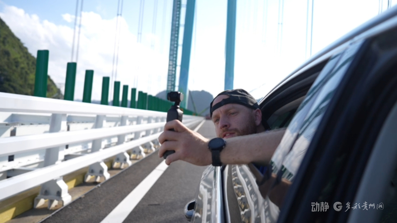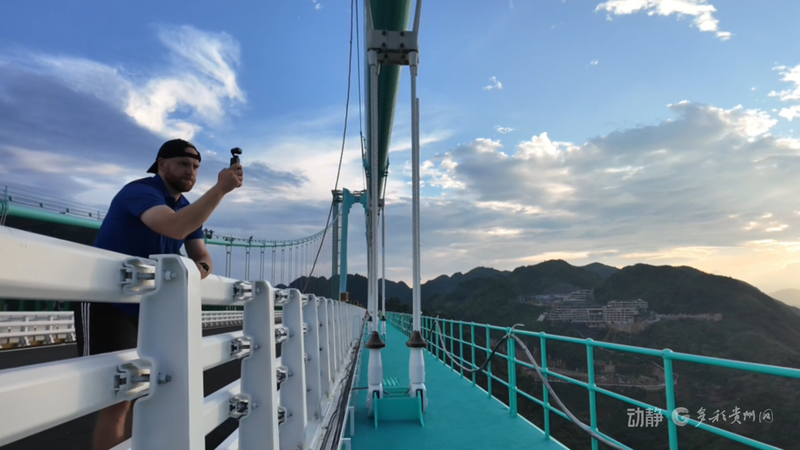 贵州长大的英国小伙大卫,这次站在了贵州花江峡谷大桥上,他频频驻足,抬头凝望,嘴里念叨着“真牛”,脚下是深达数百米的“地球裂缝”花江峡谷,眼前是横跨天际的钢铁长虹,风掠过桥面,仿佛让他的惊叹也带了几分壮阔。