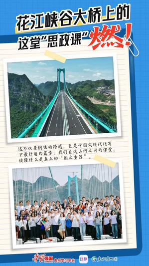 近日,在花江峡谷大桥上,一场“山河间的思政课”,令师生们激情澎湃。大桥之上,师生们声音朗朗;云端之上,钢铁巨龙,威武雄壮。