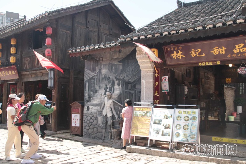 如今的安顺古城,150余处历史建筑在“修旧如旧”的理念下重焕光彩:崇文桥的石缝里仍藏着往昔故事,儒林路的青石板上,老商户的吆喝声、游客的笑声与“飞跃贵州”沉浸式体验项目的欢呼声交织,巷子里甜品香气漫溢其间,勾勒出传统与现代共生的鲜活图景;路边的历史标注静静讲述古城过往,智慧导览牌与沉浸式体验项目相映,让这份厚重感既有温度又具互动性,持续优化的业态让古城的故事越讲越新。