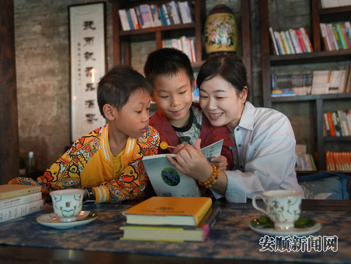 走进景区,能看见游客们对石头的房子、石板路以及屯堡妇女身着的服饰充满了惊叹与好奇,大家边走边拍。在天龙学堂前广场,一场精彩的高台地戏正在上演。来自北京的游客宋玲玲带着自己孩子两天前落地安顺,她特意做了旅游攻略报名参加了当地的亲子旅游团,“这次带小朋友到安顺来感受当地的风土人情,特别是来到天龙屯堡,给人的感觉就像是在活的历史中漫步,当地的建筑古色古香,地戏表演更是独具特色。”