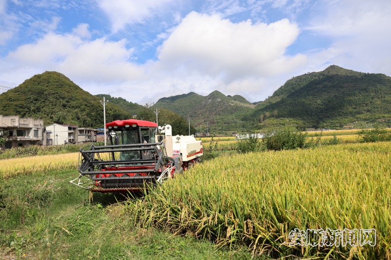 “轰隆隆——”在秀水村的连片水稻种植基地,伴随着收割机的轰鸣声,饱满的稻穗被快速收割、脱粒,金黄的稻谷源源不断涌入储粮箱。“今年,全村700余亩水稻品质比往年更好,亩产能达1100斤,这多亏了全程机械化管护!”秀水村党支部书记万登芳一边查看稻谷品质一边介绍。