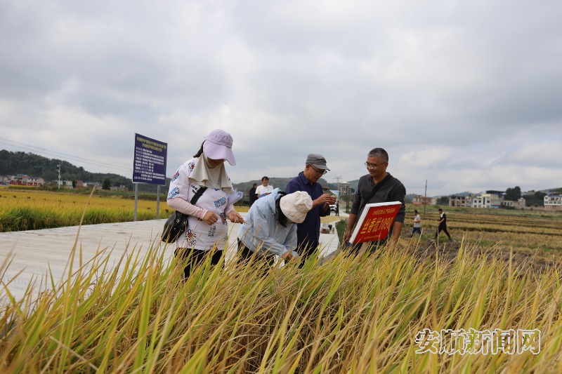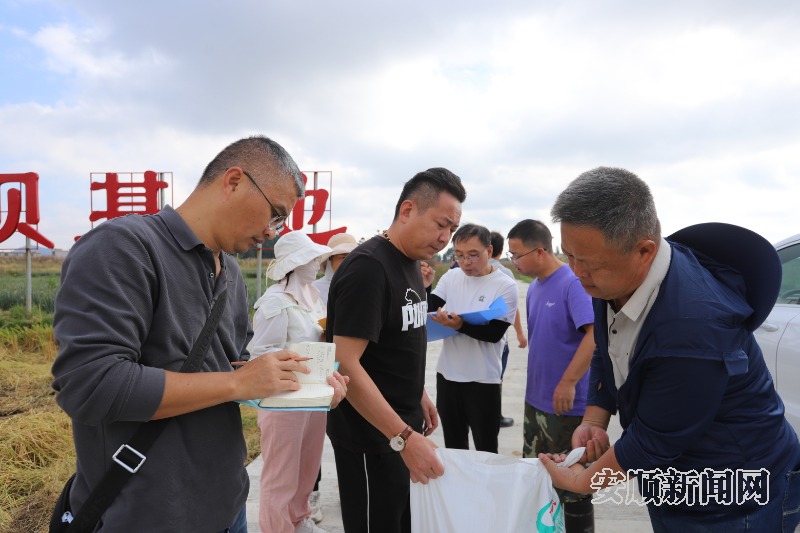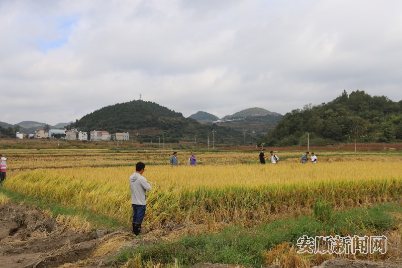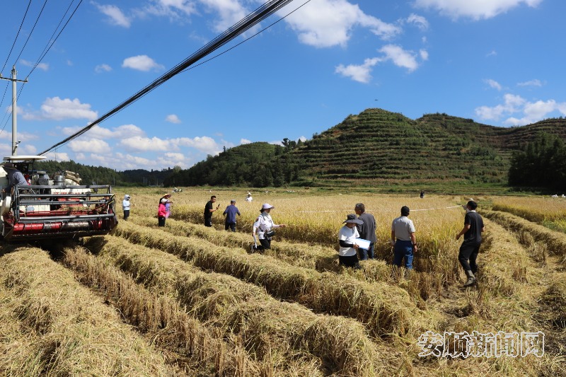 水稻栽培农技人员走进平坝区、西秀区水稻新品种试验示范种植点,随机选取两块以上种植试验田,通过取样、丈量面积和测算株行距、有效穗数、实粒数及称重等方法进行测产,并记录收割前后的各项参数,包括亩产量、稻谷质量等,以科学严谨的态度确保测产数据真实性、准确性。