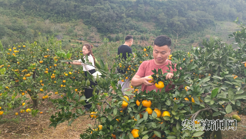 在该村分水岭组的柑橘园内,金黄的果实挂满枝头,香气四溢。种植户谢永福说:“这片果园面积260亩,种植了小金橘、丑柑、沃柑等品种。眼下正值小金橘采摘期,大家正忙着采收销售,沃柑则需一个月后才能成熟。”