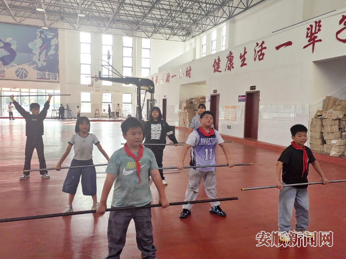 走进关岭自治县第三中学体育馆,举重教练正带领学生开展抓举、挺举专项训练。随着教练一声指令,同学们迅速半蹲、猛然发力,杠铃沿着身体弧线向上攀升……在专业指导下,大家动作规范、训练有序,整套抓举动作一气呵成。