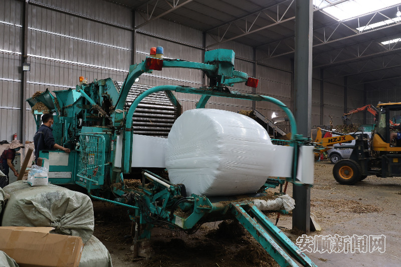 生产车间内,机器轰鸣。玉米秸秆经过粉碎、发酵、压制、打包,化身优质牛饲料。两条生产线24小时运转,每天加工饲草近1300吨。这些产品畅销六枝、关岭、织金等地,今年已接订单2万多吨,还有客商正在洽谈2万吨的大单。