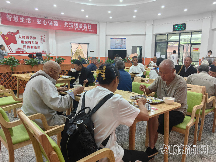 镇宁自治县养老服务站社区长者食堂内老人在就餐 胡典 摄