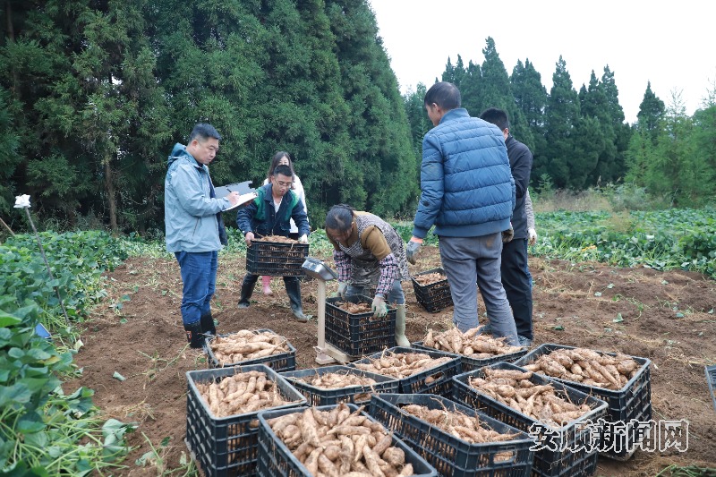 当日,省农科院、市种子站、市农推站的农技专家深入西秀区蔡官镇马鞍山村紫云红芯薯原原种繁育基地,随机选取三块种植试验田,通过实地取样、精准丈量面积、测算株行距及现场称重等方法进行测产,并记录亩产量、亩株数等数据,以科学严谨的态度确保测产数据真实性、准确性。