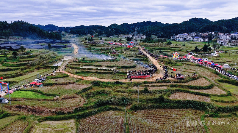赛道上,裁判员一声令下,骑手扬鞭策马,如离弦之箭冲向赛道。马儿们你追我赶,驰骋于天然赛道,为现场观众带来水族独有的速度与激情。赛道两侧田埂上,观众助威呐喊声此起彼伏,整个赛马活动高潮迭起、热闹非凡。