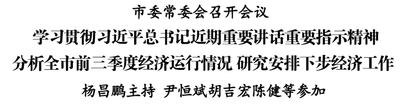 10月25日,市委常委会召开会议,学习贯彻习近平总书记近期重要讲话重要指示精神,分析全市前三季度经济运行情况,研究安排下步经济工作。