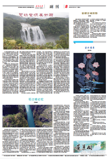 绣一幅山河,绣上壮美黄果树大瀑布、绣出红崖天书千古之谜、虹山湖湿地公园、山里江南、天龙屯堡、鮑家屯、安顺文庙、高荡千年布依古寨、十里荷廊、万峰顶……好不精彩。