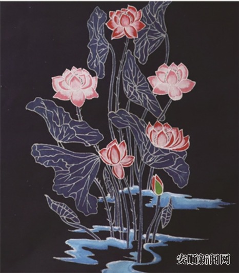 苗族姑娘心灵手巧,一针一线,麻利的动作,那山河、草木、花朵、鸟兽、水波、太阳、月亮、星星……把苗家没有文字的记载,全用山水林田路多种形象符号,将历史沿革道得清清楚楚、明明白白,是璀璨明珠的闪耀。