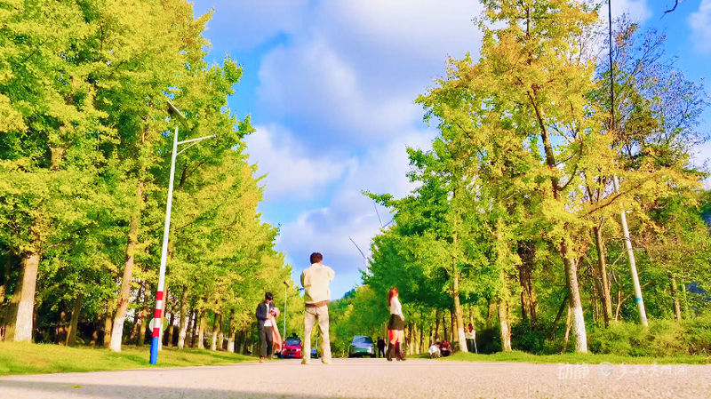 同在万山区高楼坪黄家寨的银杏林也成为市民打卡热门地。连片的银杏树叶已换上“金黄盛装”,阳光透过枝叶,在地面形成斑驳的光影,吸引了不少市民前来拍照留念,感受秋日独有的浪漫。