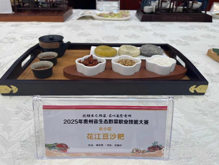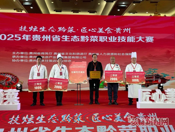 11月4日至5日,2025年贵州省生态黔菜职业技能大赛圆满举办。市商务局精心组织安顺市西秀区福祥老饭店、老饕居、九溪烤小肠、林记甜品、花江瑾野厨房豆沙粑、刘老实火锅、炊牛翗安顺牛肉粉等10余家安顺特色餐饮及小吃企业参赛。经过两天的激烈角逐,安顺代表队凭借精湛技艺斩获多项荣誉。