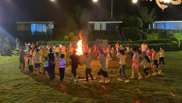 家长和孩子们在栖野月湾营地的篝火晚会 罗含瑶 摄