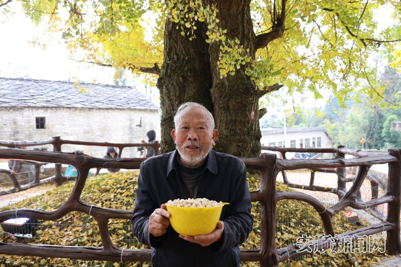 在古银杏树旁,村民罗明芬的小吃摊前围满了游客。她一边熟练地包着小裹卷,一边告诉记者:“这几天天气好,游客特别多,在家门口买银杏果、裹卷、炸洋芋等小吃,收入还不错。”像罗明芬这样做小生意的村民有十多家,在银杏观赏期就能在家门口实现了增收。