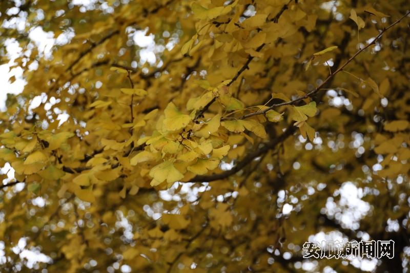 初冬的暖阳透过金色叶隙,在罗大寨村的青石板路上洒下斑驳光影。这座位于西秀区蔡官镇静谧的古村落,因三株古银杏树披上“金甲”而热闹非凡。一阵微风吹过,银杏叶如金色蝴蝶翩翩起舞,地面瞬间铺就华丽的金色地毯,引得游客纷纷举起手机记录这醉人一刻。