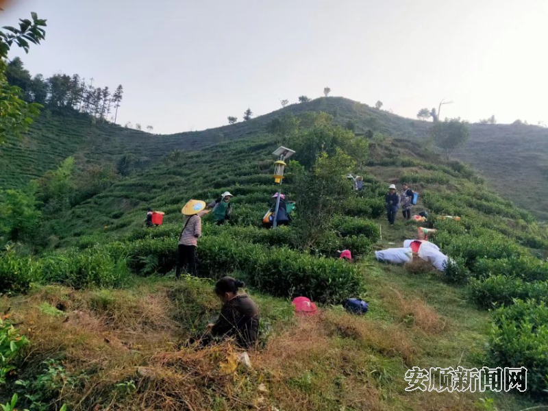 秋冬交替,当多数农田进入“休眠期”时,普定县穿洞街道靛山村的茶园里却呈现出一派热火朝天的劳作景象。