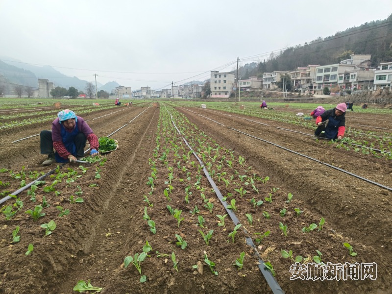 11月24日,紫云自治县坝羊镇红院坝区的高标准农田里,一边是绿油油的蔬菜茁壮成长,一边是农耕机翻耕田地、村民忙着栽种蔬菜的热闹场景。