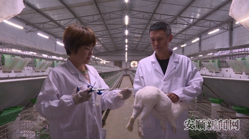 养殖基地管理方普定东昇兔业有限公司以技术革新为核心,对家兔采用人工授精技术后,不仅节省成本,更便于规范化、规模化管理,可精准提前安排生产计划。